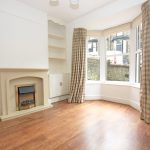 12'6" (into bay) x 11'10" with a bay window with sealed unit UPVC double glazed windows. Oak effect flooring. Alcove base unit and fitted shelving. Picture rail. Dado rail. Ceiling rose. Central heating radiator. Feature fireplace with a coal effect electric fire.