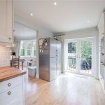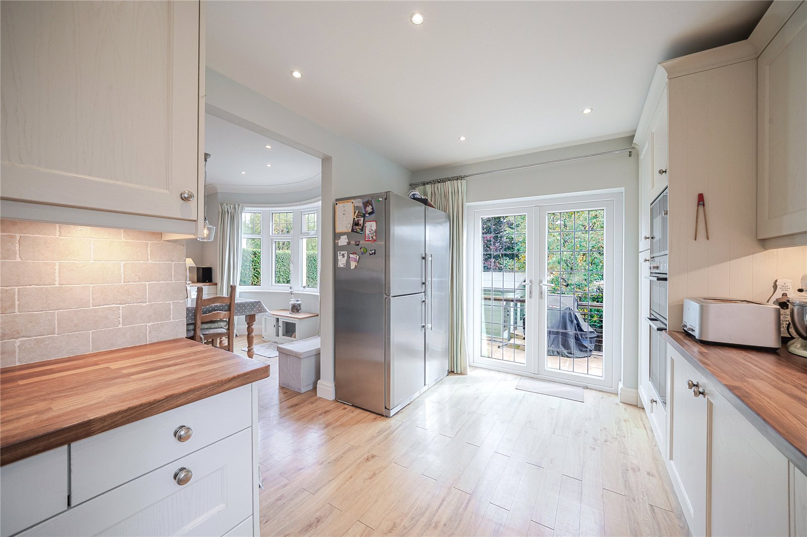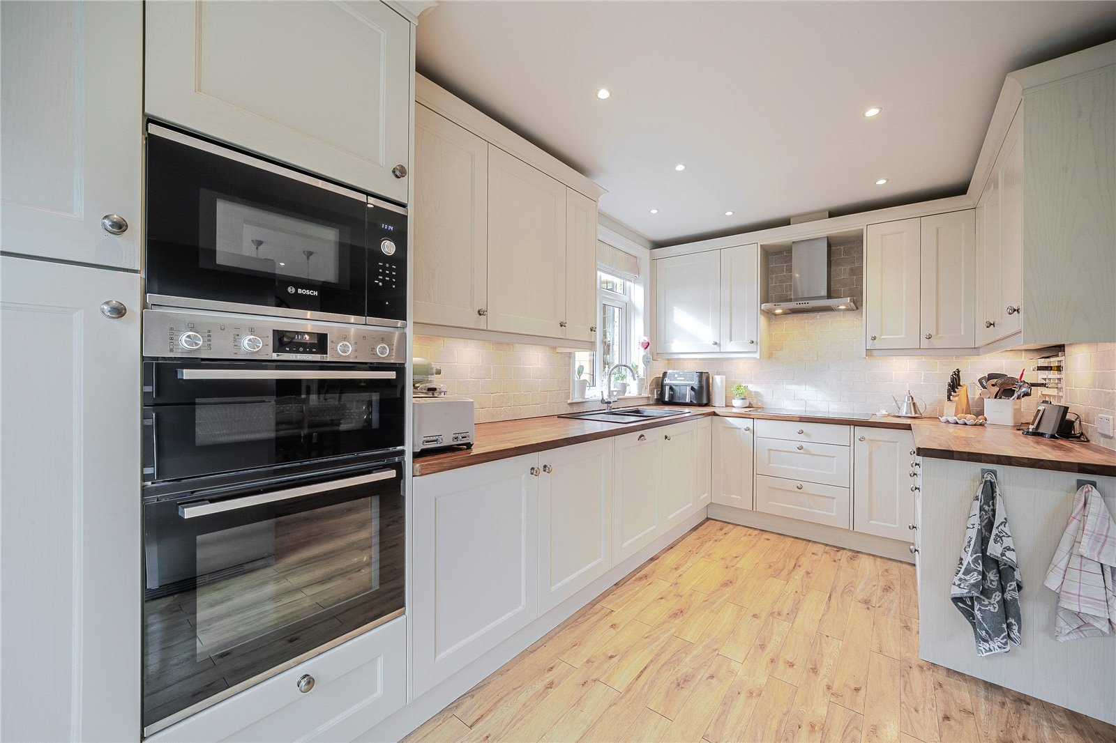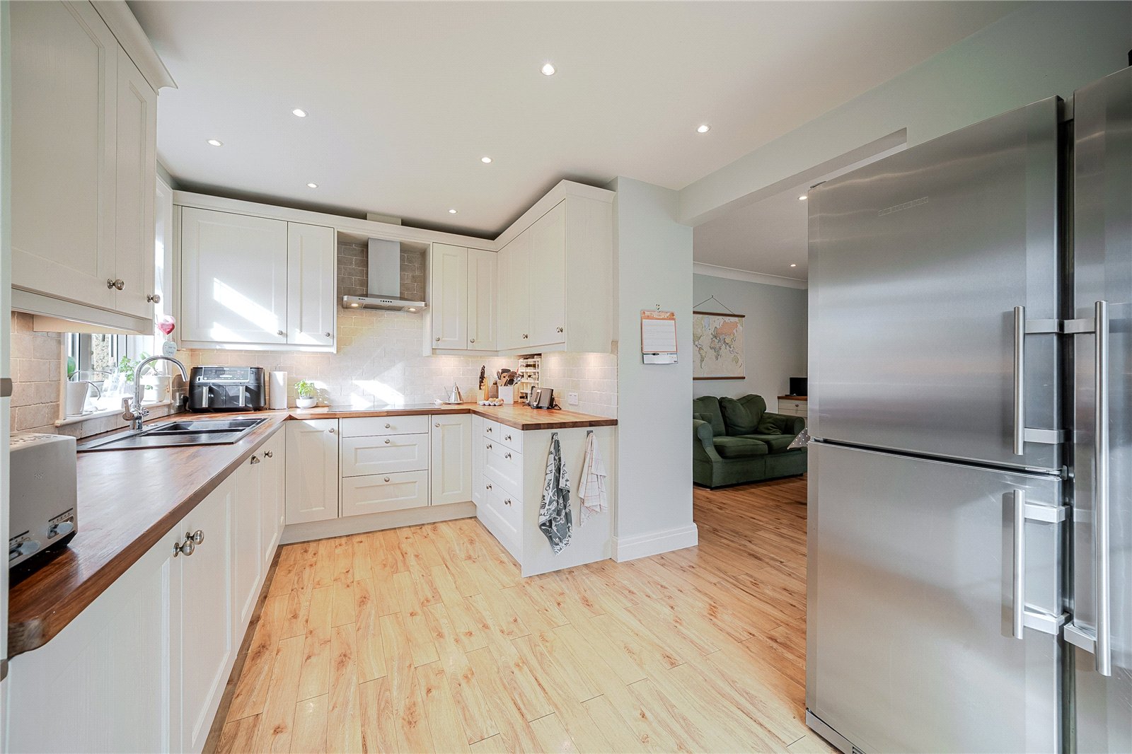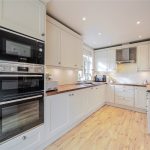 15'2" x 8'4" with sealed unit UPVC double glazed patio doors and a matching window. Bespoke hand fitted kitchen with fitted wall and base units with contrasting iroko solid block worktops and tiled surrounds. Bosch five ring induction hob with a stainless steel extractor canopy over. Composite one and a half bowl sink and drainer with a Perrin & Rowe 3-in-1 boiling hot water tap and an In-Sink-Erator. Integral Bosch dishwasher. Bosch fitted microwave. Bosch tall oven. Concealed wall mounted Worcester gas fired combination boiler. Recessed low voltage ceiling spotlights. Oak effect flooring.