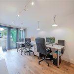 16'8" x 8'10" with engineered oak flooring. Central heating radiator. Fitted storage cupboards. Sealed unit hardwood windows and a matching front entrance door. Fitted base units with a quartz worktop.
