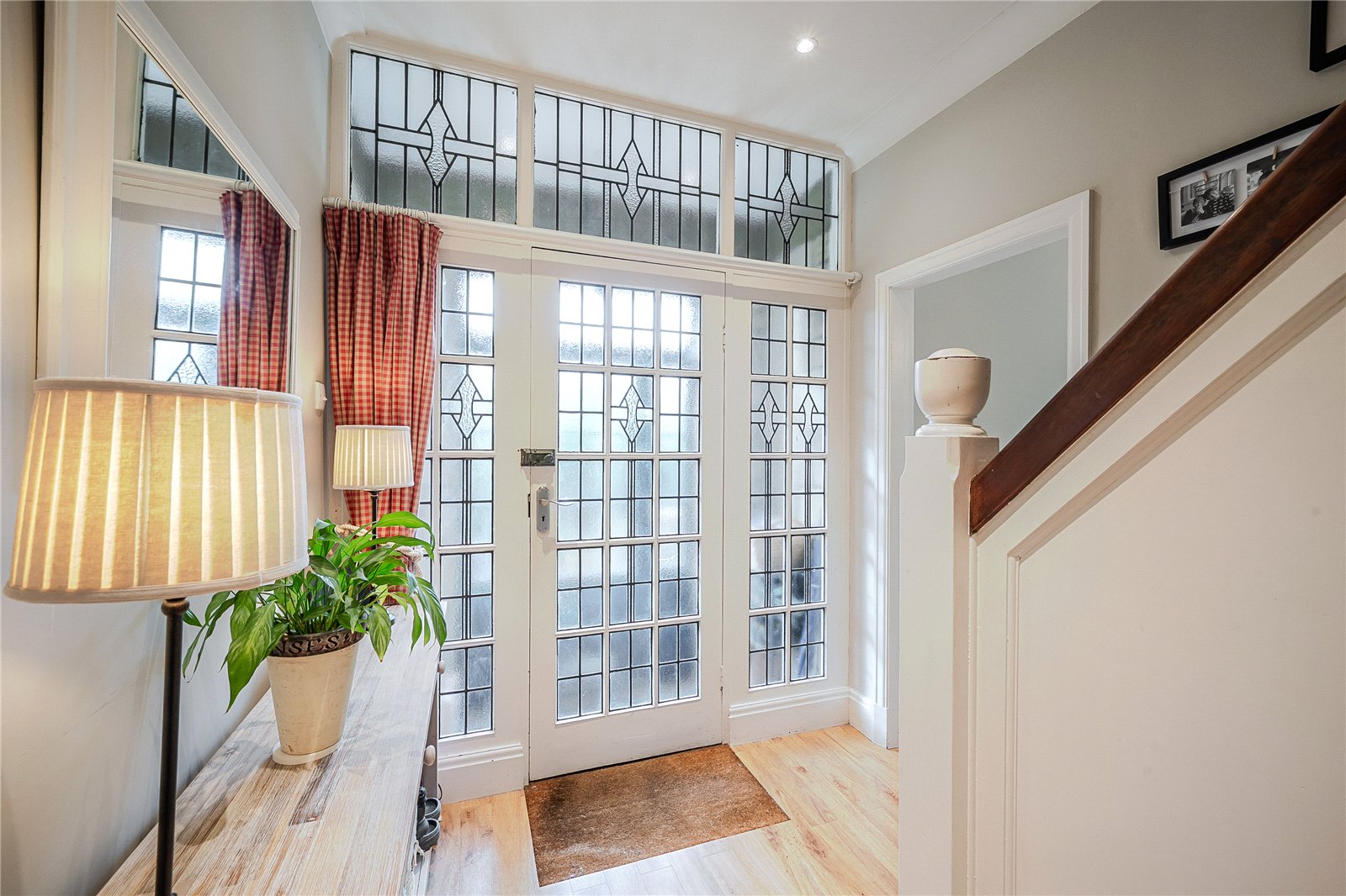 Original stained glass entrance door and matching windows. Central heating radiator. Recessed low voltage ceiling spotlights. Oak effect flooring.