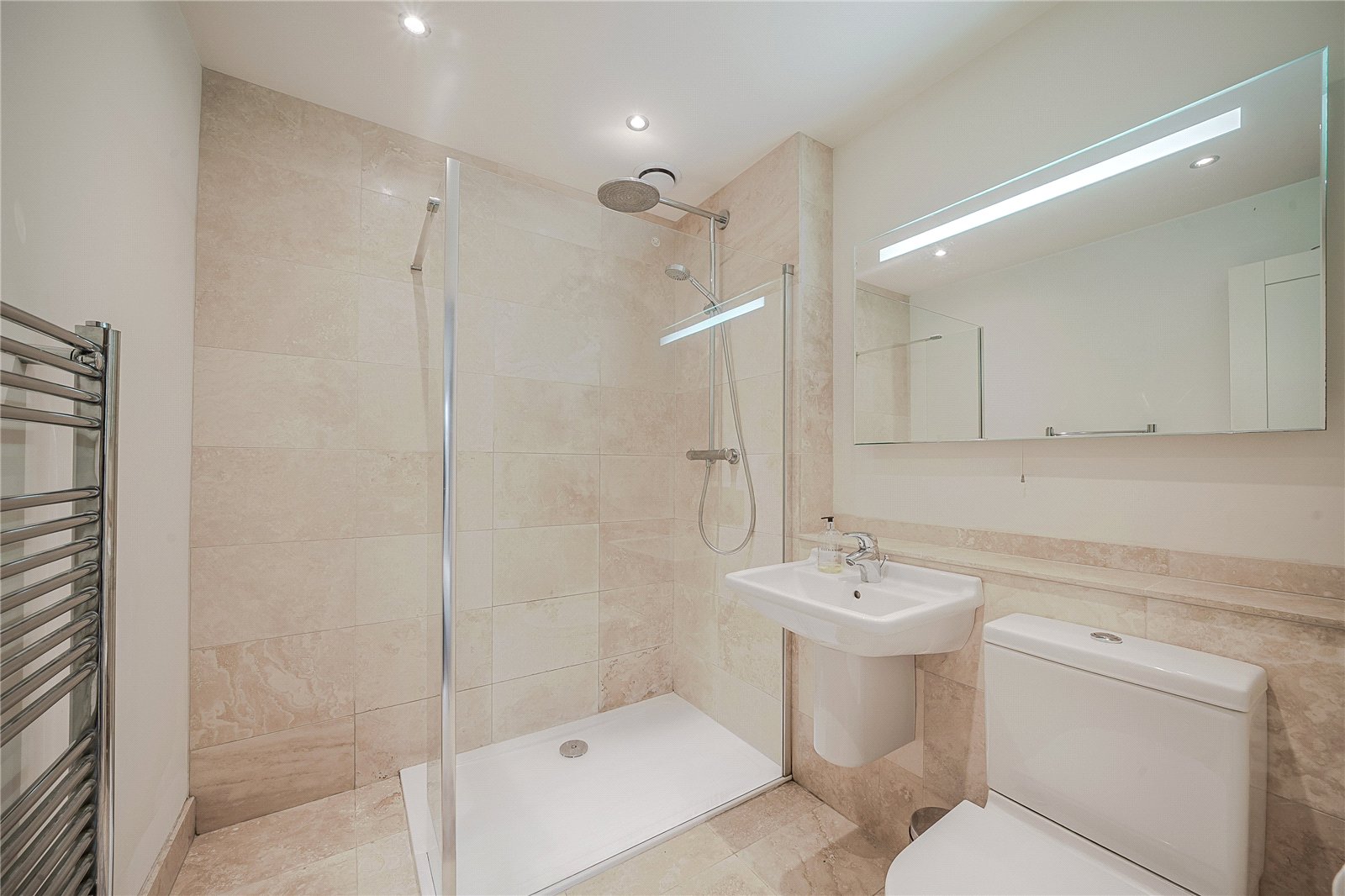 Tiled flooring with electric underfloor heating. Partial wall tiling. Chrome heated towel rail. Low suite w/c. Ceramic wash basin with an LED mirror over with fitted Demista Pad. Large walk in shower with a dual chrome thermostatic shower and rainfall shower over. Medicine cabinet. Extractor fan.