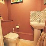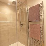 Tiled floor with electric underfloor heating. Concealed cistern w/c. Corner pedestal wash basin with a tiled surround.