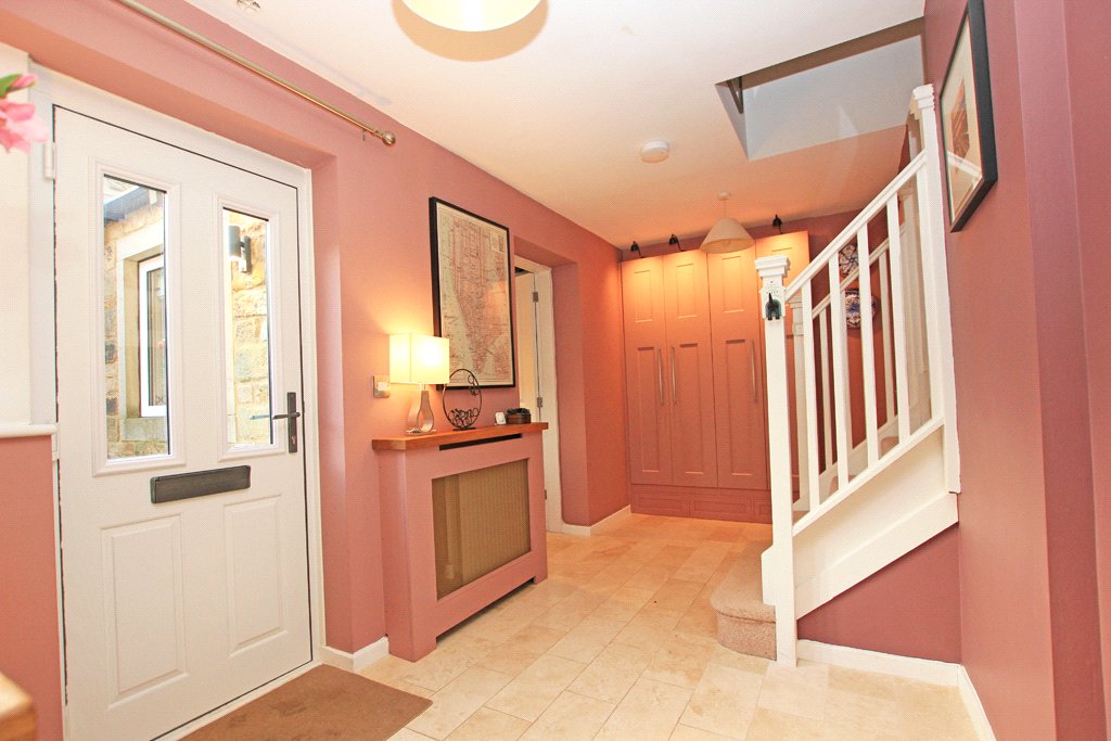 With a tiled floor with electric underfloor heating. Central heating radiator. Hardwood sealed unit double glazed window. Composite front entrance door. Useful cloaks storage cupboards.