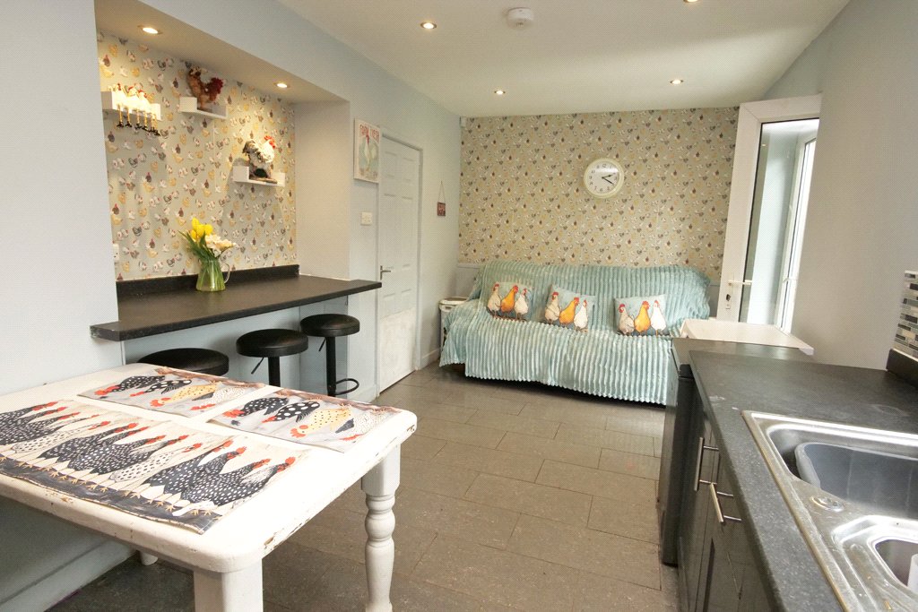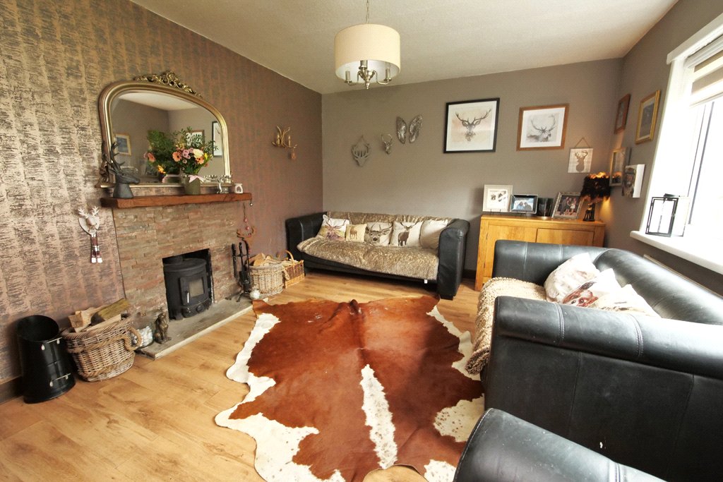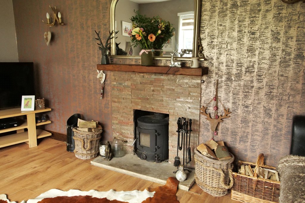 15' x 11'4" With UPVC sealed unit double glazed window to the front. Multi-fuel stove set upon a stone hearth incorporating oyster tiled surround. Oak effect laminate flooring. Two wall light points. Central heating radiator.