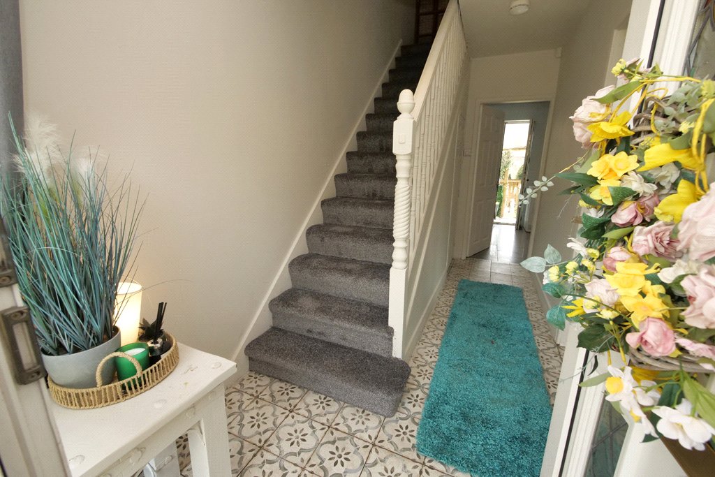 With stairs leading off to the first floor incorporating a spindled balustrade together with built-in store cupboard underneath. Central heating radiator.