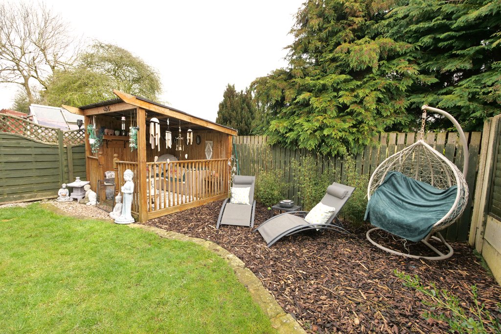 To the rear there is a generous and attractive garden providing a very appealing feature including timber decking with pergola adjoining the house with steps leading down to a good sized lawn incorporating raised vegetable/flower beds, a pebbled area, a small out-building, a timber garden shed and a very attractive open timber gazebo benefiting from a good degree of privacy and shelter.