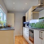 14'1" x 6'10" Superbly appointed range of white fronted wall and base units with contrasting granite effect worktop surfaces having tiled surrounds. One and half bowl sink and drainer unit. Built in Beko electric oven with matching four ring ceramic hob and extractor over. Integrated Beko dishwasher. Plumbing for an automatic washing machine. Recessed ceiling spotlights. UPVC sealed unit double glazing. UPVC sealed unit double glazed rear door. Central heating radiator. Wood effect flooring.