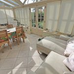 19'9" x 10' With white aluminium sealed unit double glazing to three sides including matching twin French doors to the delightful gardens. Tiled flooring. Central heating radiator with an attractive cover.