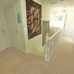With spindled balustrades. White aluminium sealed unit double glazing. Built-in cloaks cupboard and a built-in linen cupboard.