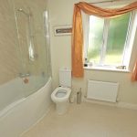 With a three piece white suite comprising a shower bath having a screen, mermaid wall panelling and a thermostatic shower together with a low suite WC and a pedestal wash basin including a tiled splash-back and over lighting. White aluminium sealed unit double glazing. Central heating radiator. Shaver point, Fitted ceiling spotlights.