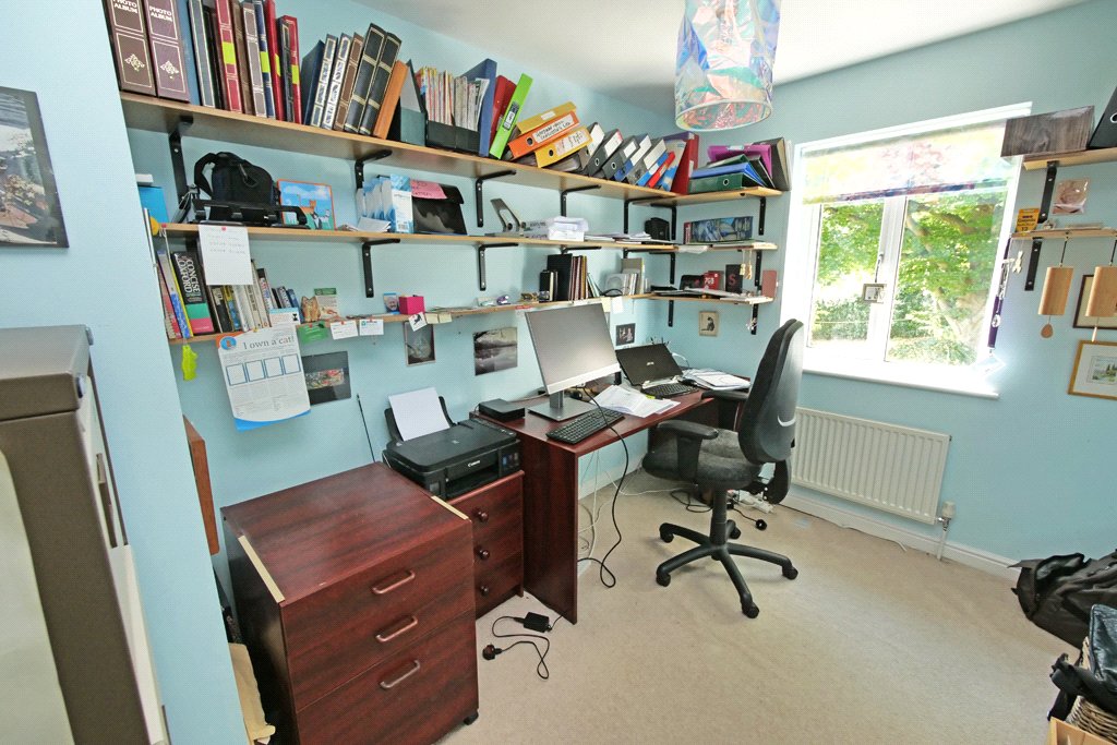 11' x 10'9" With white aluminium sealed unit double glazing and a double central heating radiator. Fitted bespoke bookcases/display shelves.