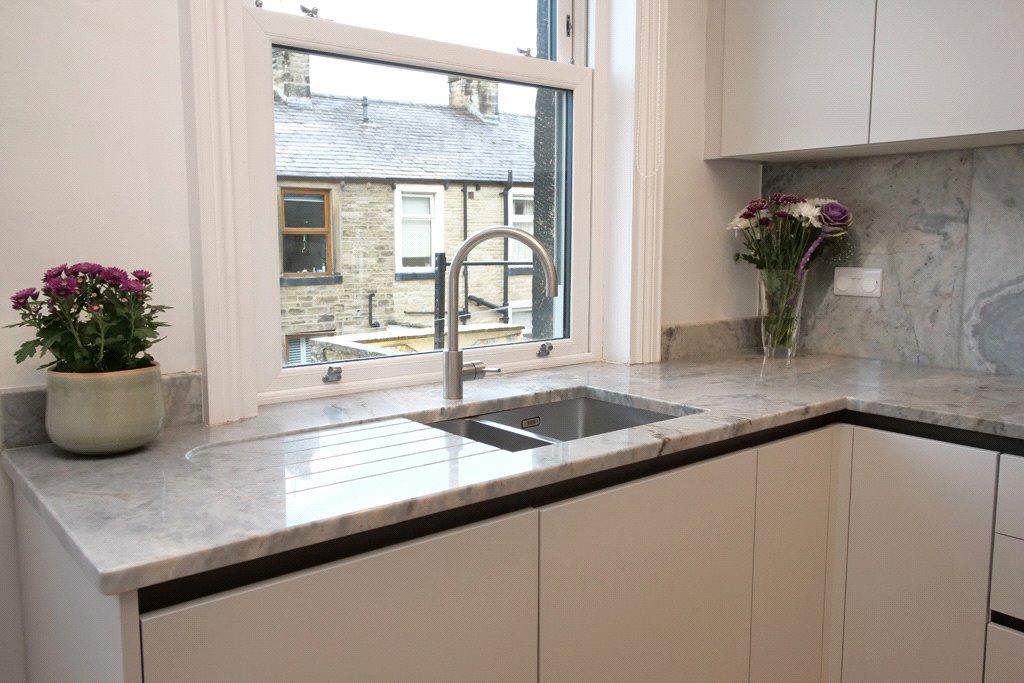 To the ground floor a traditional reception hallway with period features, a front sitting room with bay window and an impressive re-fitted dining kitchen with range of quality contemporary fitted units incorporating luxurious granite worktop surfaces together with a range of built-in appliances including a wine chiller. To the basement there is a useful keeping cellar with separate utility area whilst to the first floor a landing leads to two well planned double bedrooms with the front bedroom having a period fireplace. The first floor also features a separate WC with two piece suite together with an impressive four piece house bathroom with large separate walk-in shower. To the second floor there is a useful attic space, suitable for a variety of uses and commanding spectacular panoramic views over the town towards the countryside and moorland beyond. Externally there is a colourful garden frontage whilst to the rear the property benefits from an attractive stone flagged patio/yard area providing a pleasant outdoor space.