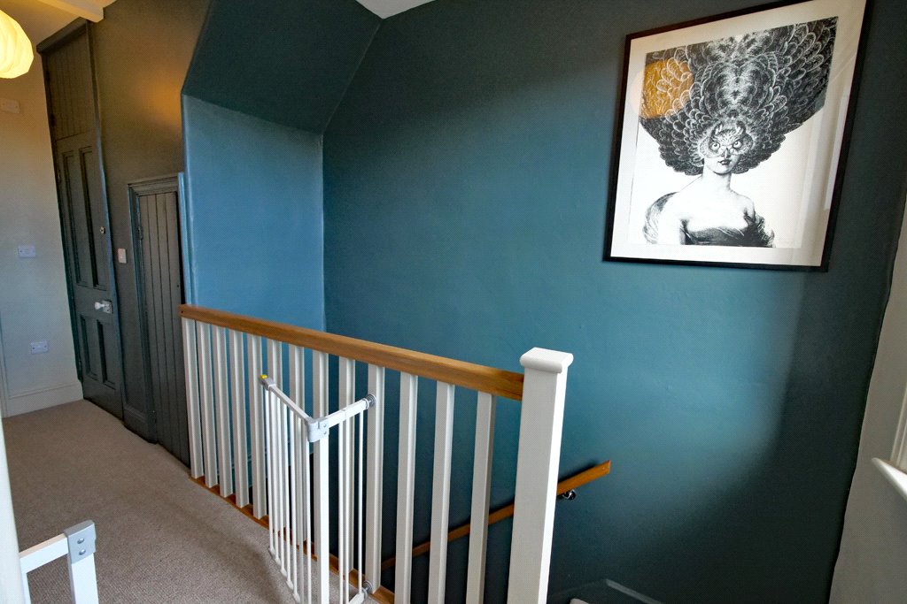 With UPVC sealed unit double glazed sash window enjoying views over Skipton towards the moors. Two tone spindled balustrade. Useful built-in cupboard underneath the stairs to the attic incorporating a fitted light.