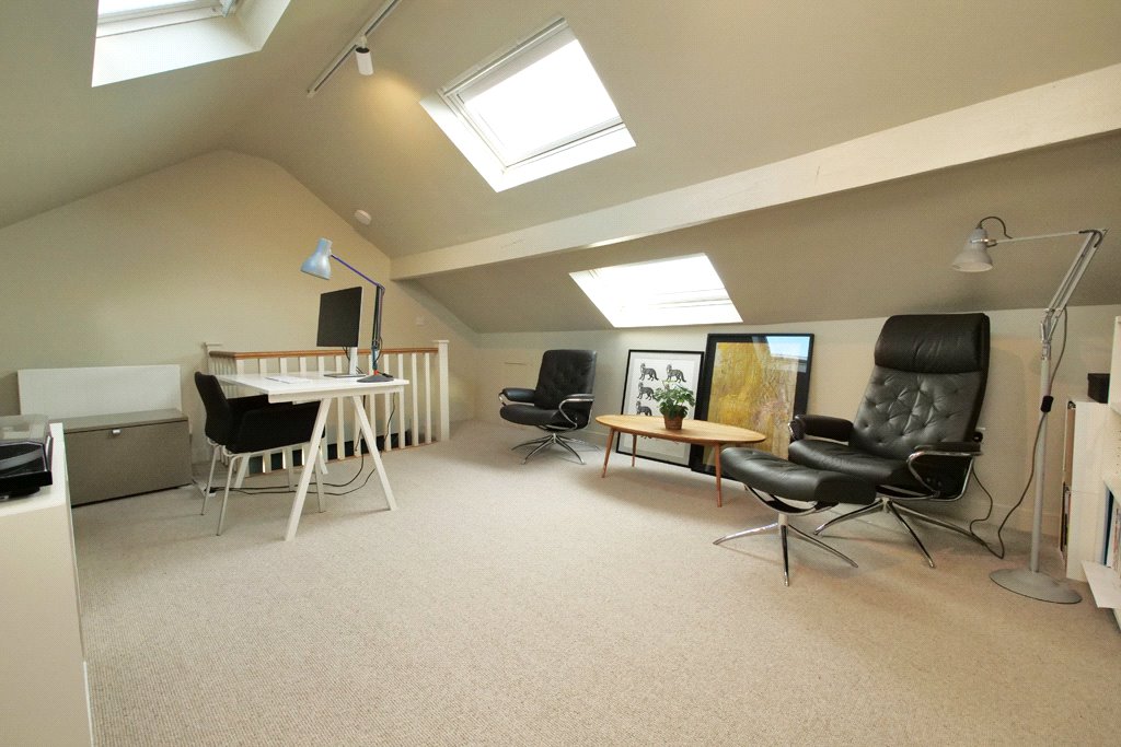 16'11" x 12'7" (both maximum including stairs) (plus eaves cupboards) With three sealed unit double glazed velux roof windows incorporating remote controlled blinds. Superb views over Skipton towards the moors and towards the Church and castle tower. Central heating radiator. Two tone spindled balustrade. Eaves storage cupboards providing excellent storage facilities. USB power sockets.