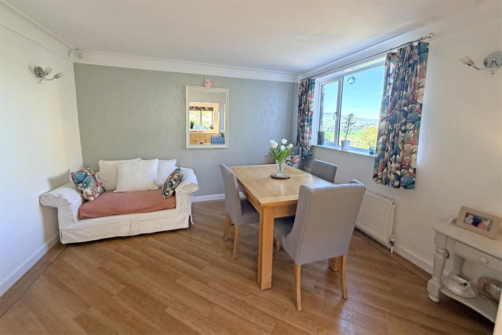 18’02” x 17’06” (Maximum) A delightful room enjoying spectacular elevated panoramic southerly views across the Aire Valley, with triple aspect UPVC sealed unit double glazing. Feature fireplace with log effect gas stove set on tiled hearth. Central heating radiator. UPVC sealed unit double glazed side door leading to raised sun terrace.