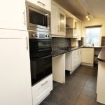 17'5" x 5'8" superbly appointed with an attractive range of quality contemporary base and wall units having cream fronts with contrasting granite style worktop surfaces including slate tiled surrounds and matching breakfast bar. Soft closures to units. One and a half bowl stainless steel sink and drainer unit. Slate tiled flooring. Glazed display cabinets. Plumbing for automatic washing machine. Central heating radiator. Built-in split level stainless steel finish oven with grill and matching CDA microwave above (please note we are informed the microwave is not working). Stainless steel finish four ring gas hob having an extractor hood above in a stainless steel finish canopy. UPVC sealed unit double glazing to side and rear. Fine open views at the rear. Concealed Vokera gas combination central heating boiler. UPVC and sealed unit double glazed rear entrance door.