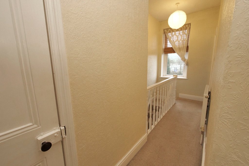 With UPVC sealed unit double glazing. Fine long distance open views at the rear beyond a field and children's play area across the valley towards the hills. Spindled stair rails. Central heating radiator. Deep built-in cloaks/store cupboard. Panelled doors leading to all rooms.
