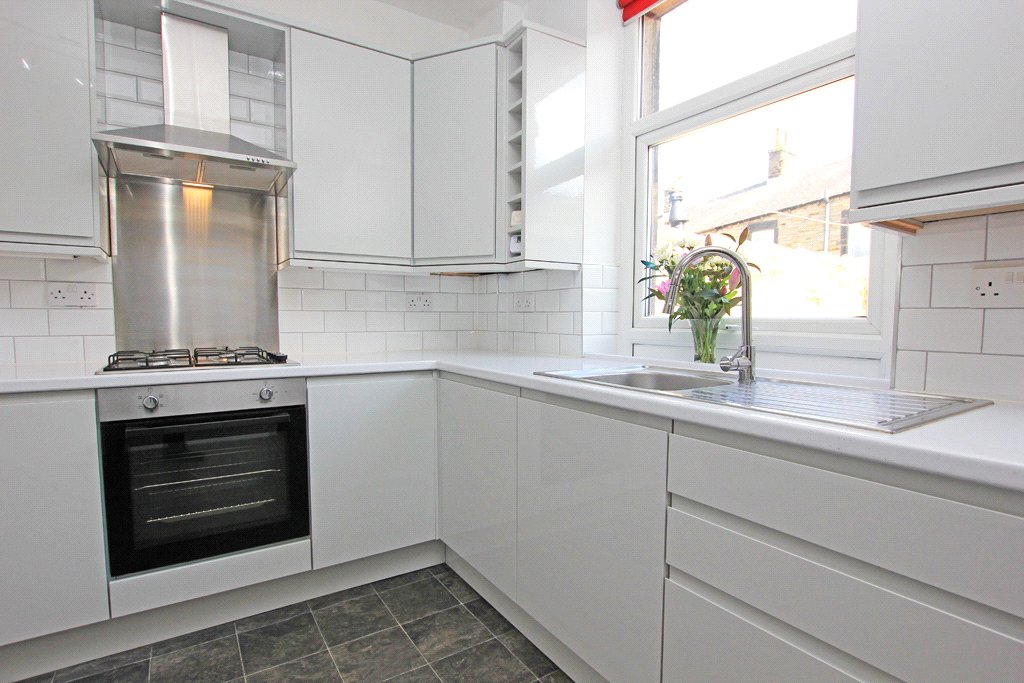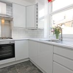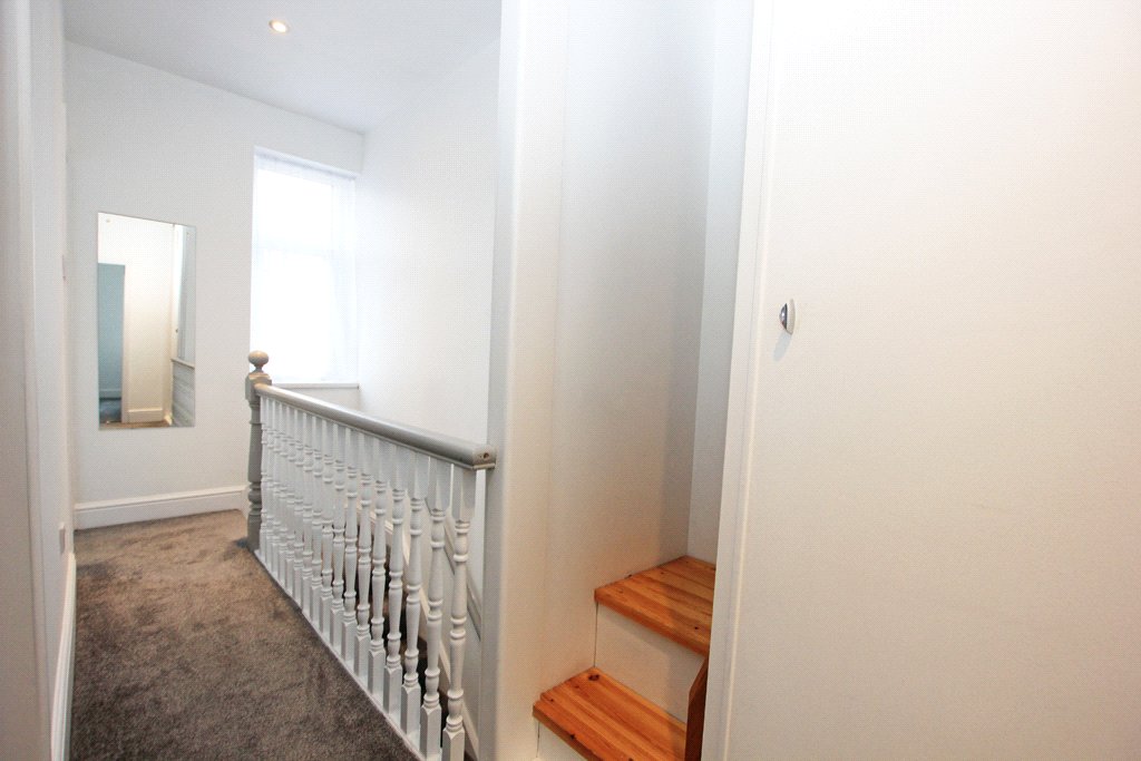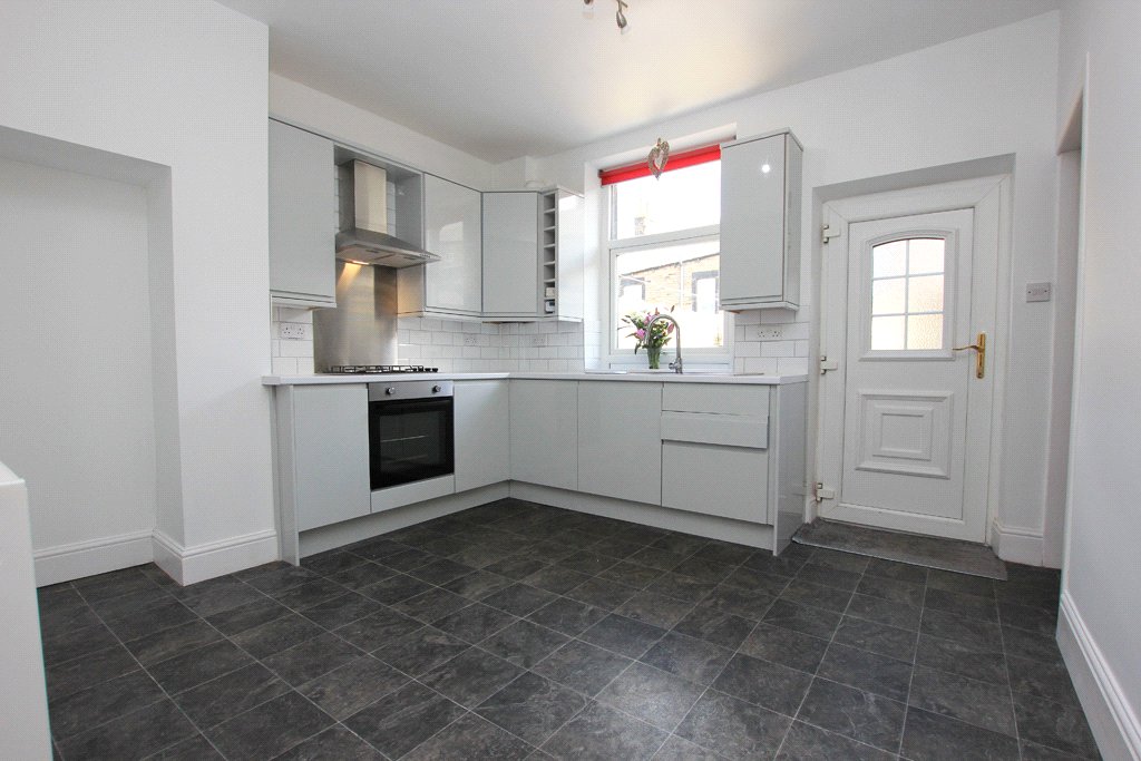 11'6" x 11' Superbly appointed with a stylish range of quality contemporary units having light grey gloss fronts with contrasting worktop surfaces including Metro tiled surrounds. Stainless steel sink and drainer with a pillar tap. Built-in Lamona oven with a matching four ring gas hob in stainless steel finish including a stainless steel backing plate and an extractor hood above in a stainless steel finish chimney style canopy. Concealed Main gas combination central heating boiler. Double central heating radiator. Fitted low voltage ceiling spotlights and down-lighting beneath the wall units. UPVC sealed unit double glazing and a matching external door to the enclosed flagged rear yard. Open store place under stairs with partial stripped pine wall panelling, fitted shelves and a cloaks rail.