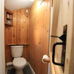 With a white low suite WC, pine wall panelling and UPVC sealed unit double glazing.