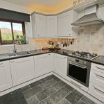 Well appointed three piece white suite incorporating low suite w/c, pedestal hand wash basin and a walk in shower enclosure including independent electric Mira shower. Partial wall tiles. Ladder central heating radiator in chrome finish. Sealed unit double glazing. Recessed ceiling spotlights.