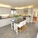 15’09” x 13’10” Superbly appointed contemporary grey fronted wall and base units incorporating contrasting granite worktops having tiled surrounds. One and a half bowl sink and drainer unit. Smeg stainless steel finish electric oven. Four ring Neff gas hob with extractor over. Integrated fridge. Integrated freezer. Integrated dishwasher. Integrated washing machine. Central heating radiator. Sealed unit double glazed window enjoying fine long distance views over fields towards Embsay Crag. Recessed ceiling spotlights. Tile effect flooring. Door through to:
