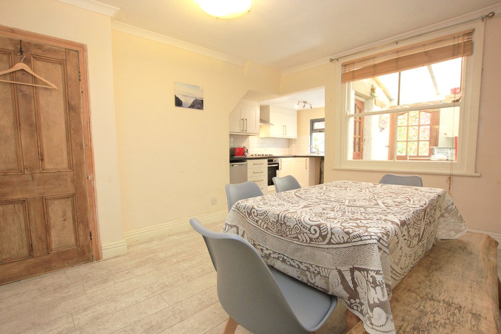 13'1" x 9'9" Equipped with a range of base and wall cupboard units in a soft white finish providing contrasting laminated worktop surfaces. Neutral tiled surrounds. Stainless steel sink with drainer. Built-in Candy oven. Four ring gas hob having a stainless steel extractor hood above. Plumbing for a dishwasher. Wall mounted Worcester Bosch gas central heating boiler. Central heating radiator. Ceiling coving. Hardwood sealed unit double glazing and also an original single glazed sash window. Open recess beneath the stairs. Picture rails. Built-in stripped pine cupboards.