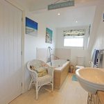 Superbly appointed with a quality four piece white suite comprising a spa bath having a tiled surround and a shower to a mixer tap together with a low suite WC, a hand wash basin semi-recessed into a vanity cabinet unit with a tiled splash-back and there is also a tiled shower cubicle incorporating a thermostatic shower.. UPVC sealed unit double glazing to two sides including a dormer window at the rear. Double central heating radiator and also a ladder central heating radiator which is in chrome finish. Light/shaver point. Recessed ceiling spotlights. Deep built-in store cupboard including a Baxi gas combination central heating boiler.