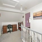 With a spindled balustrade and a central heating radiator. Built-in cupboard above the stairwell.
