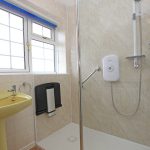 Oak effect flooring. Central heating radiator. Sealed unit UPVC double glazed window. Partial wall tiling. Pedestal wash basin. Recently fitted walk in shower with mermaid boarding surround and an electric shower.