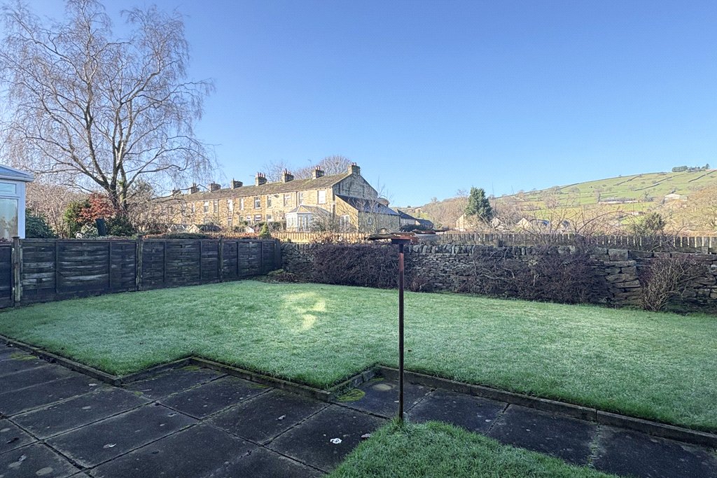 To the rear of the property there is a large garden with a lawn, stone paved patio, timber storage shed and a drystone wall boundary.