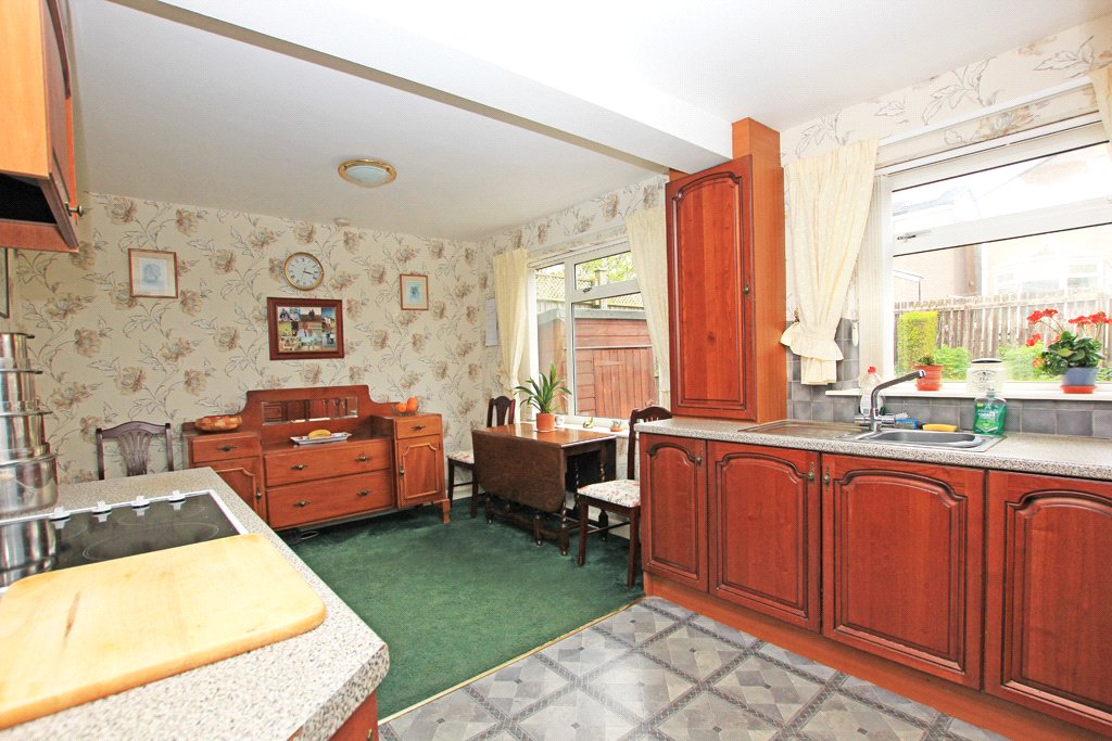 15'10" x 10'2" with sealed unit UPVC double glazed windows and a matching side entrance door. Fitted wall and base units with contrasting light granite effect worktops and tiled surrounds. Bosch fan assisted oven. Ceramic four ring electric hob with a concealed extractor fan over. Stainless steel bowl and drainer sink with a chrome hot and cold mixer tap. Wall mounted Worcester gas fired combination boiler. Useful understair storage cupboard with plumbing for a washing machine.