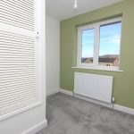 With UPVC sealed unit double glazing and a matching front entrance door. Central heating radiator with a cover. Laminate beech style flooring. Recessed low voltage ceiling spotlights. Deep built-in store place under stairs including plumbing for an automatic washing machine.