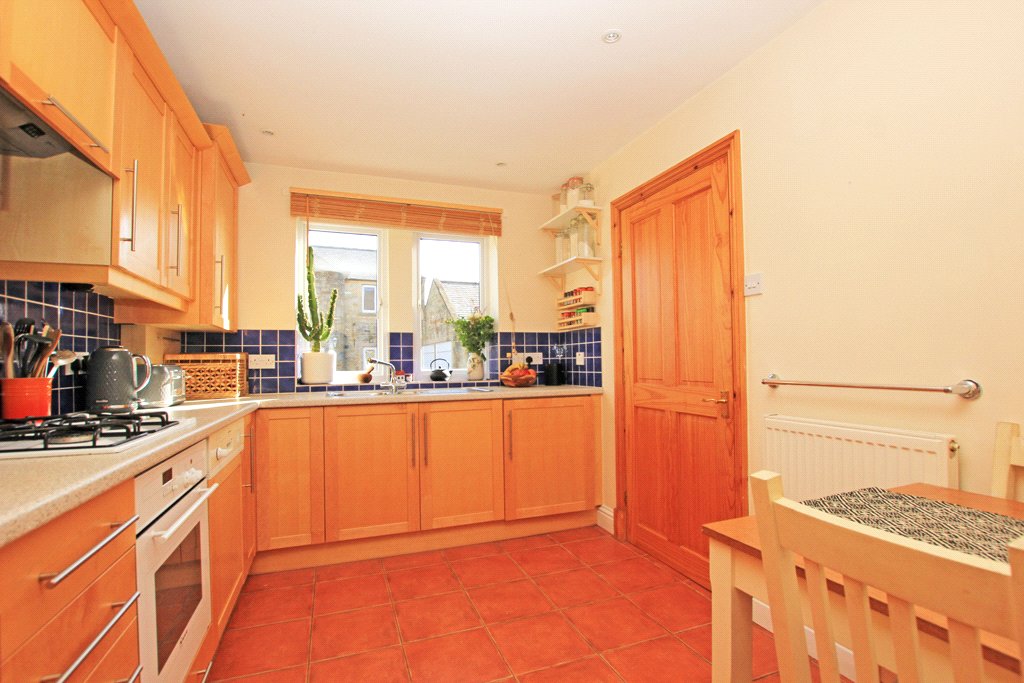 12'2" x 8'6" with pine effect fitted wall and base units with contrasting granite effect worktops and tiled surrounds. Neff fan assisted oven with a matching Neff four ring gas hob over and a concealed extractor above. Stainless steel one and a half bowl sink and drainer with a chrome hot and cold mixer tap. Integrated fridge and freezer. Integrated dishwasher. Integrated washing machine. Tiled flooring. Sealed unit UPVC double glazed windows. Central heating radiator. Recessed low voltage ceiling spotlights.