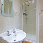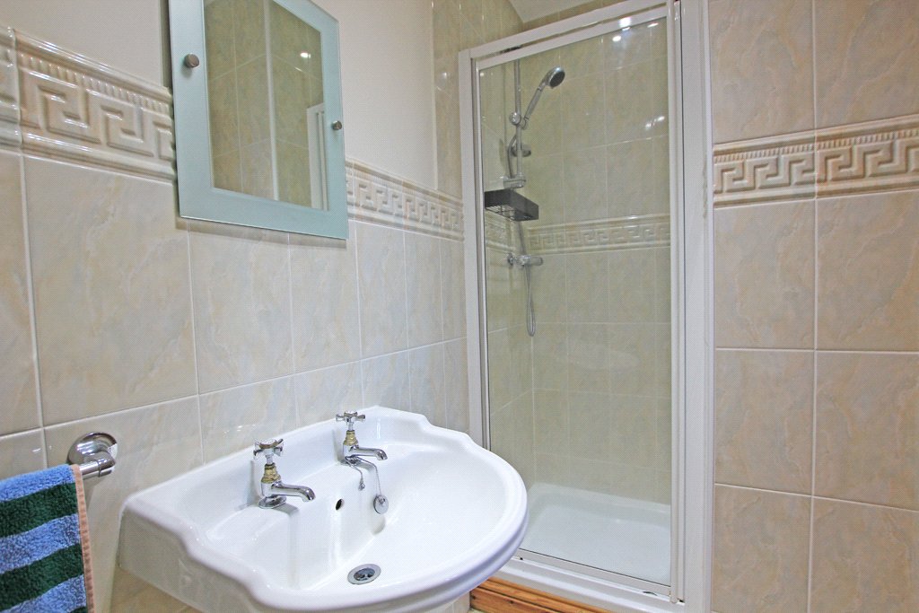Pedestal wash basin. Low suite w/c. Shower cubicle with a chrome thermostatic shower. Shaver point. Central heating radiator. Extractor fan.