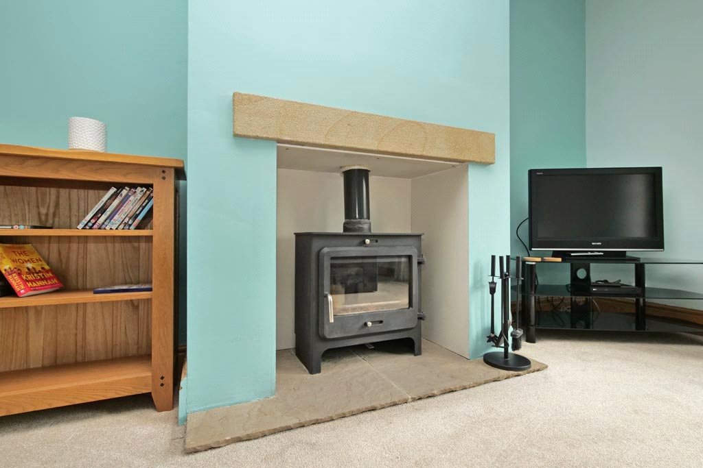 13’11” x 13’08” With UPVC sealed unit double glazing enjoying fine long-distance view. Feature cast iron wood burning stove set on stone hearth with stone lintel above. Central heating radiator.