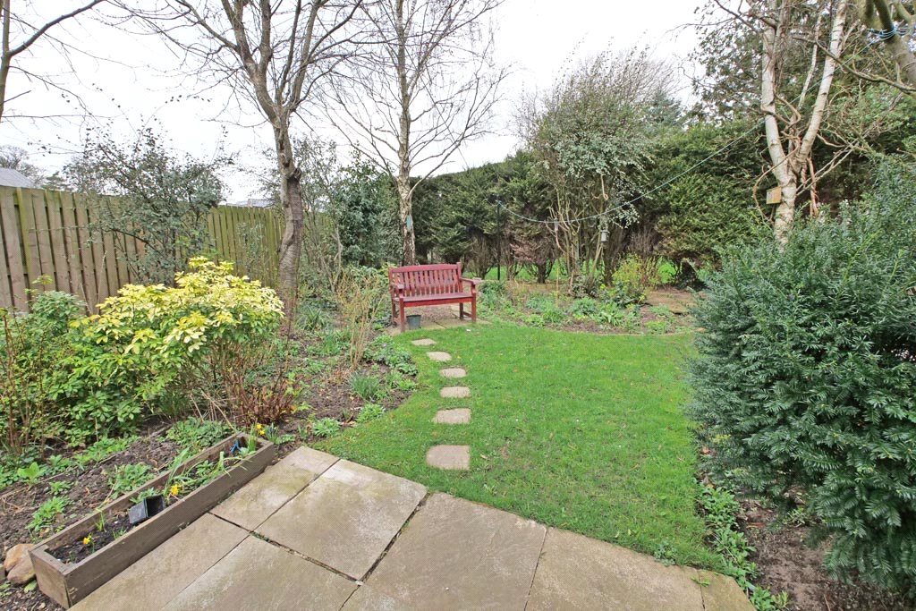 To the front of the property Is a south facing lawned garden area with a tarmac path leading to the front door and around the side of the property to the generous landscaped rear garden providing an extremely attractive feature including lawn, mature flower beds, small trees, and shrubs.