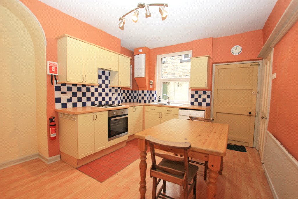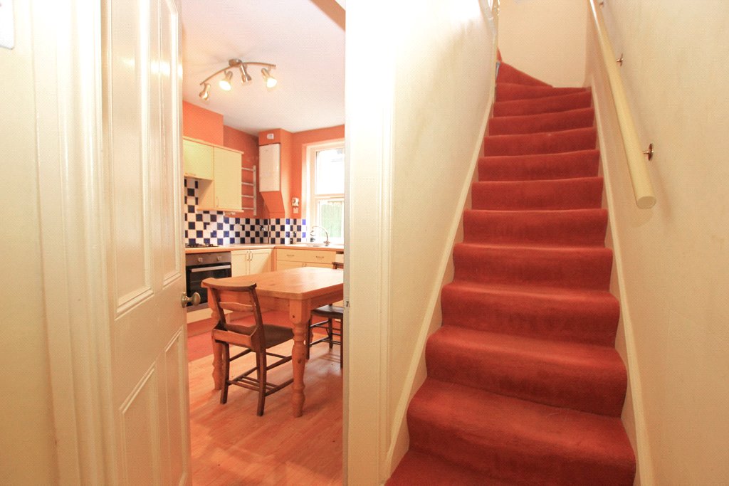 13'3" x 11'9" with fitted wall and base units with contrasting pine effect worktops and tiled surrounds. Zanussi fan assisted oven. Four ring gas hob with a concealed extractor over. Sealed unit UPVC double glazed window. Hardwood rear entrance door. Wall mounted gas fired Ideal combination boiler. Stainless steel bowl and drainer sink with a chrome hot and cold mixer tap. Plumbing for a washing machine. Central heating radiator. Useful understair storage cupboard.