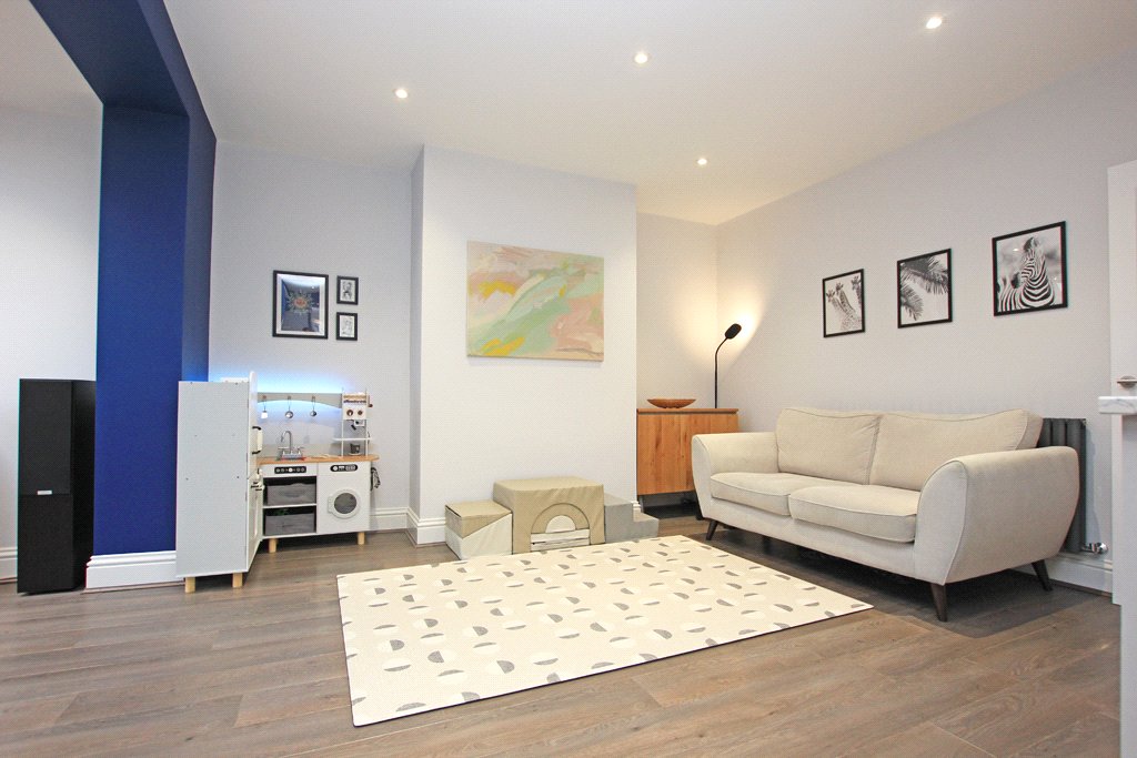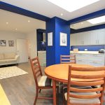 23’3 X 18’2 (Both maximum) Generous proportions providing floorspace for another living suite. Two skylight windows. UPVC sealed unit double glazed window. Anthracite grey Bi-folding doors leading out into the enclosed rear garden. Recessed LED ceiling spotlights. The beautifully appointed kitchen is equipped with fitted base and wall cupboard and drawer units in a light grey finish. Complimentary quartz worktop surfaces. One and a half bowl composite sink and matching drainer. Built-in NEFF oven and grill. Built-in NEFF microwave oven. AEG four ring ceramic hob with stainless steel extractor fan above it. Integrated fridge and freezer. Contemporary vertical central heating radiator. Woodgrain effect laminated flooring.