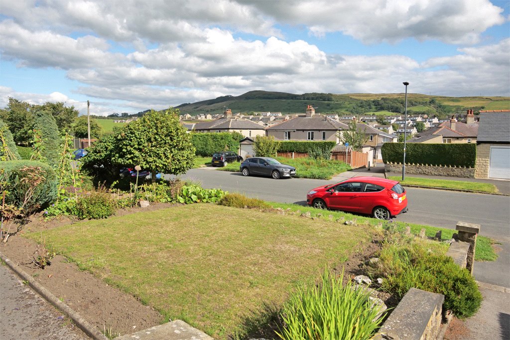 There is an established raised front garden with lawn, colourful flowerbeds and fine southerly aspects.