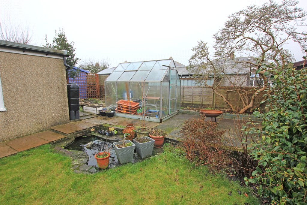 The very pleasant enclosed rear garden includes stone flagged patio areas, a level lawn, flowerbeds, bushes and small trees, a garden pond and vegetable plots. Superb sitting out space as well as being a secure and level garden for young children at play.