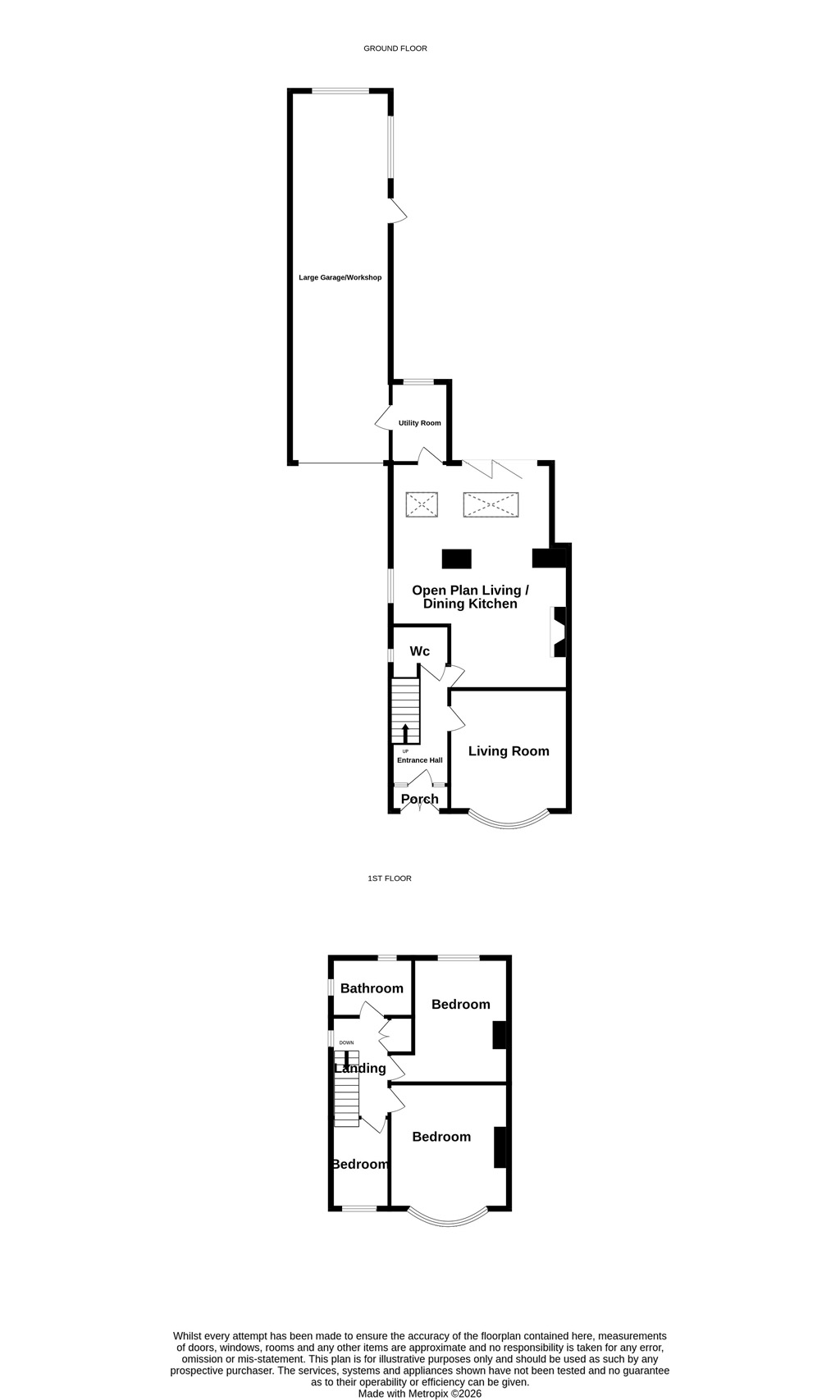 An enclosed front storm porch. Reception hallway. Downstairs WC. Sitting room with attractive bow window. Magnificent open plan living, dining and kitchen space equipped with high quality built-in appliances. Separate utility room. On the first floor are three well planned bedrooms. Two of the bedrooms enjoy superb long distance views across the valley. A landing with loft hatch access and a house bathroom with a modern white suite including both a panelled bath and a separate shower enclosure. There is an established raised front garden enjoying fine southerly aspects. A private driveway also extends along the side of the house to the large adjoining garage. The generous established enclosed rear garden enjoys pleasant aspects including stone flagged patios, established level lawn, flowerbeds, bushes, a small garden pond, and vegetable plots.