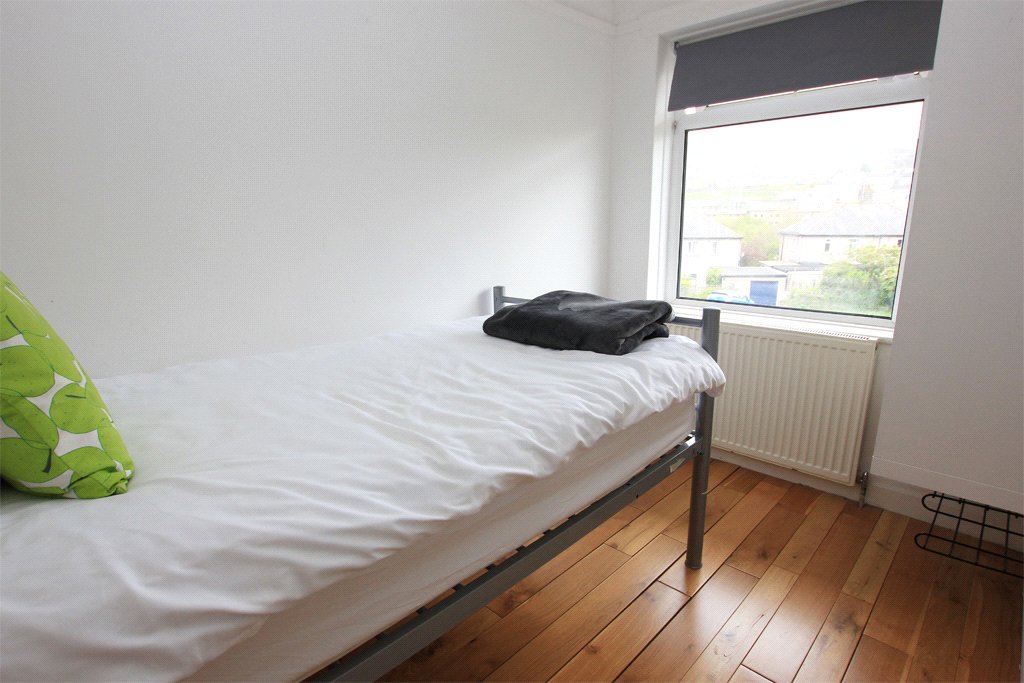 9'4" x 5'11" With UPVC sealed unit double glazing providing superb long distance views across the valley towards the moors. Central heating radiator. Oak flooring. Fitted wall unit with shelves and a cupboard. Picture rails.