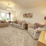 Superbly appointed with a contemporary white four piece suite comprising low suite WC, hand wash basin set on a vanity cupboard, a panelled bath and a separate shower enclosure incorporating limestone effect shower wall bording. Recessed niche/shelf over the bath. Grey oak effect LVT flooring. UPVC sealed unit double glazed window. Recessed sealing spotlights. Chrome towel radiator. Extractor fan.