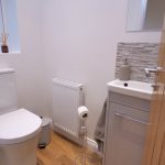 Superbly appointed with a low suite WC together with a hand wash basin set on a vanity cupboard. UPVC sealed unit double glazed window. Central heating radiator. Oak effect LVT flooring. Recessed ceiling spotlights. Extractor fan.