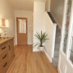 With oak effect LVT flooring. Stairs leading off to the first floor with deep built-in store/cloaks cupboard underneath. Oak veneer doors leading to both rooms. Central heating radiator.