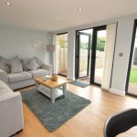 15' x 10'11" With anthracite grey UPVC sealed unit double glazed twin doors to the front together with matching full height feature windows to the front and side. Recessed ceiling spotlights. Oak effect LVT flooring. Electric radiator. Light and power. Timber decking to the front.