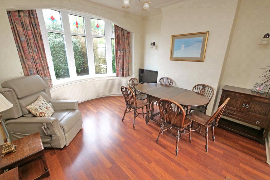 11’11” x 11’05” With UPVC sealed unit double glazed bay window enjoying south facing views over the rear garden to the moors beyond. Central heating radiator. Timber fireplace with marble hearth and interior with electric fire. Wood effect flooring.