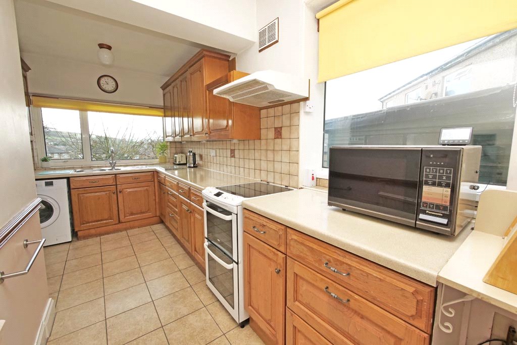 17’05” x 7’06” (Both Maximum) With a range of fitted wall and base units incorporating granite effect worktop surfaces having tiled surrounds. One and a half bowl stainless steel sink and drainer unit. Freestanding electric oven with four ring ceramic hob and extractor over. Plumbing for an automatic washing machine. Dual aspect UPVC sealed unit double glazing enjoying fine south facing long distance views. Central heating radiator. Wall mounted gas boiler. Tiled flooring. UPVC sealed unit double glazed door leading to the rear garden.