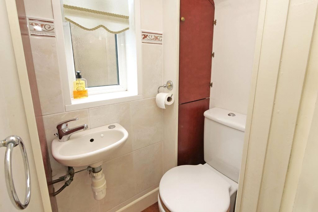 With a two-piece white suite comprising low suite w/c and hand wash basin. UPVC sealed unit double glazing. Wood effect flooring.