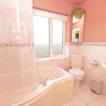 Well-appointed three-piece cream suite comprising low suite w/c, pedestal hand wash basin and fitted bath with thermostatic shower and glass shower screen. Partial ceramic wall tiles, contrasting floor tiles. UPVC sealed unit double glazing. Ladder central heating radiator in chrome finish. Recessed ceiling spotlights.